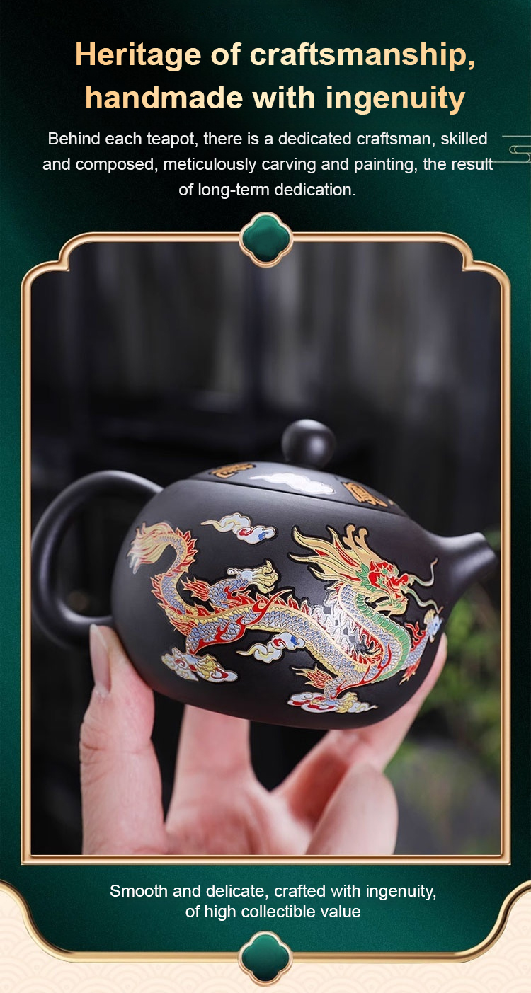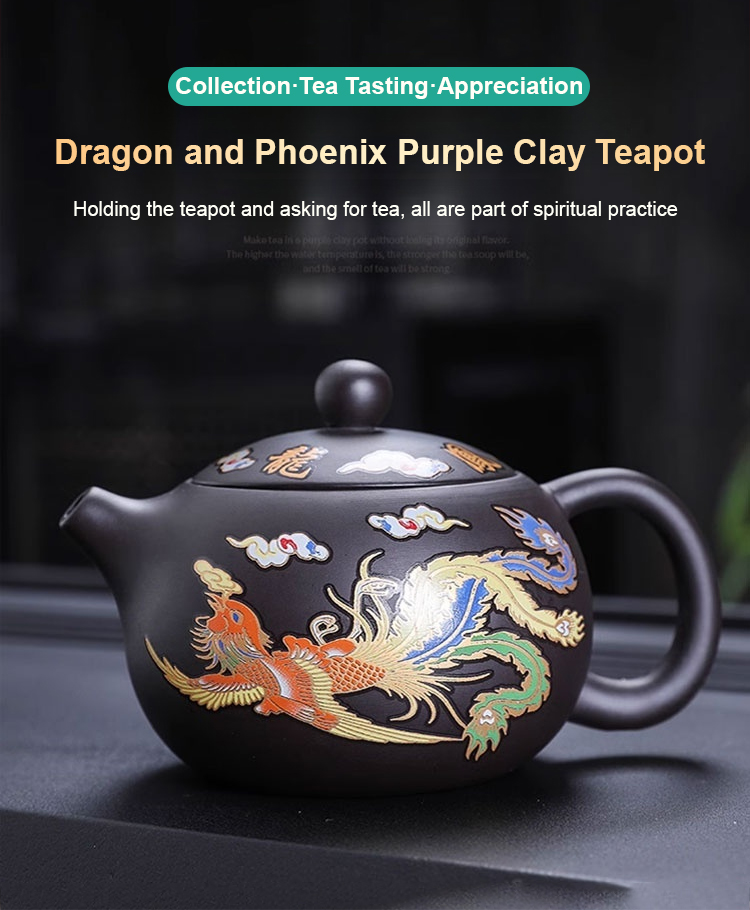 [Color Changing by Heat] Dragon and Phoenix Purple Clay Teapot
